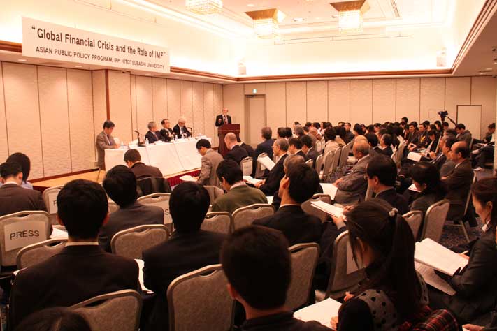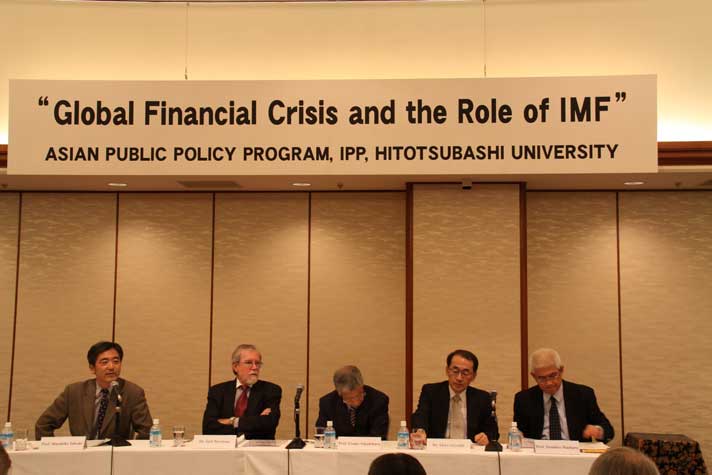 Open Seminar on the Global Financial Crisis On December 16, APPP sponsored an open seminar on the “Global Financial Crisis and the Role of the IMF”. The keynote speaker was Dr. Jack Boorman, who served as Head of the IMF’s Policy Development and Review Department for many years, and the panelists were Prof. Eisuke Sakakibara of Waseda University (former Vice Minister of Finance for International Affairs), Mr. Akira Ariyoshi (Director of the IMF Regional Office for Asia and the Pacific), and APPP’s Prof. Yasuhiro Maehara. The seminar was moderated by APPP’s Prof. Masahiko Takeda. The audience, which numbered more than 100, included academics, current and former government officials, think tank economists, the press, and APPP and other students.